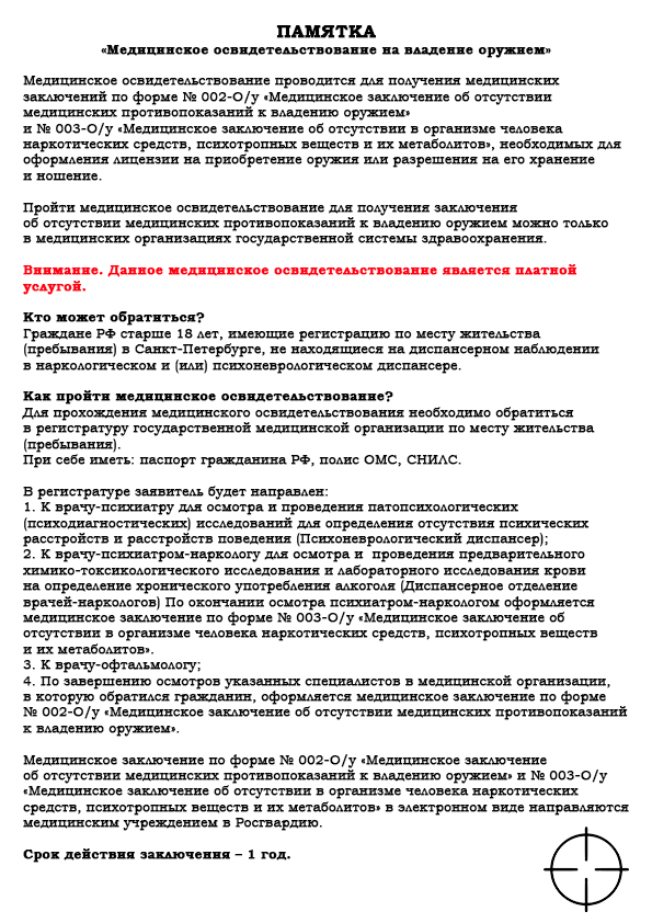 Памятка «Медицинское освидетельствование на владение оружием» скачать