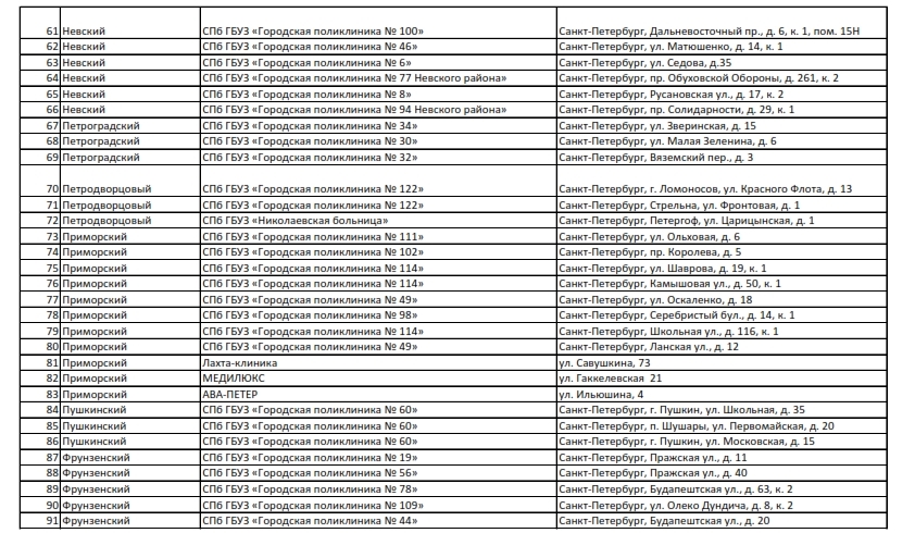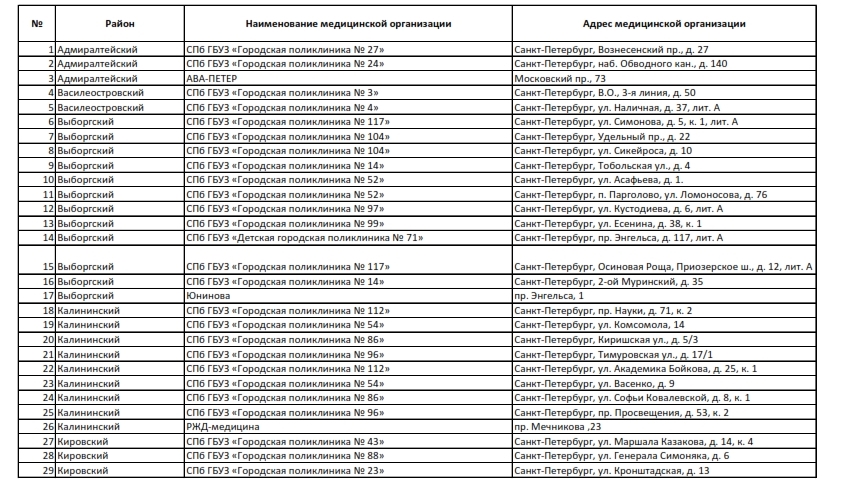 Обновленный список пунктов, где проводится вакцинация от COVID-19 в Петербурге