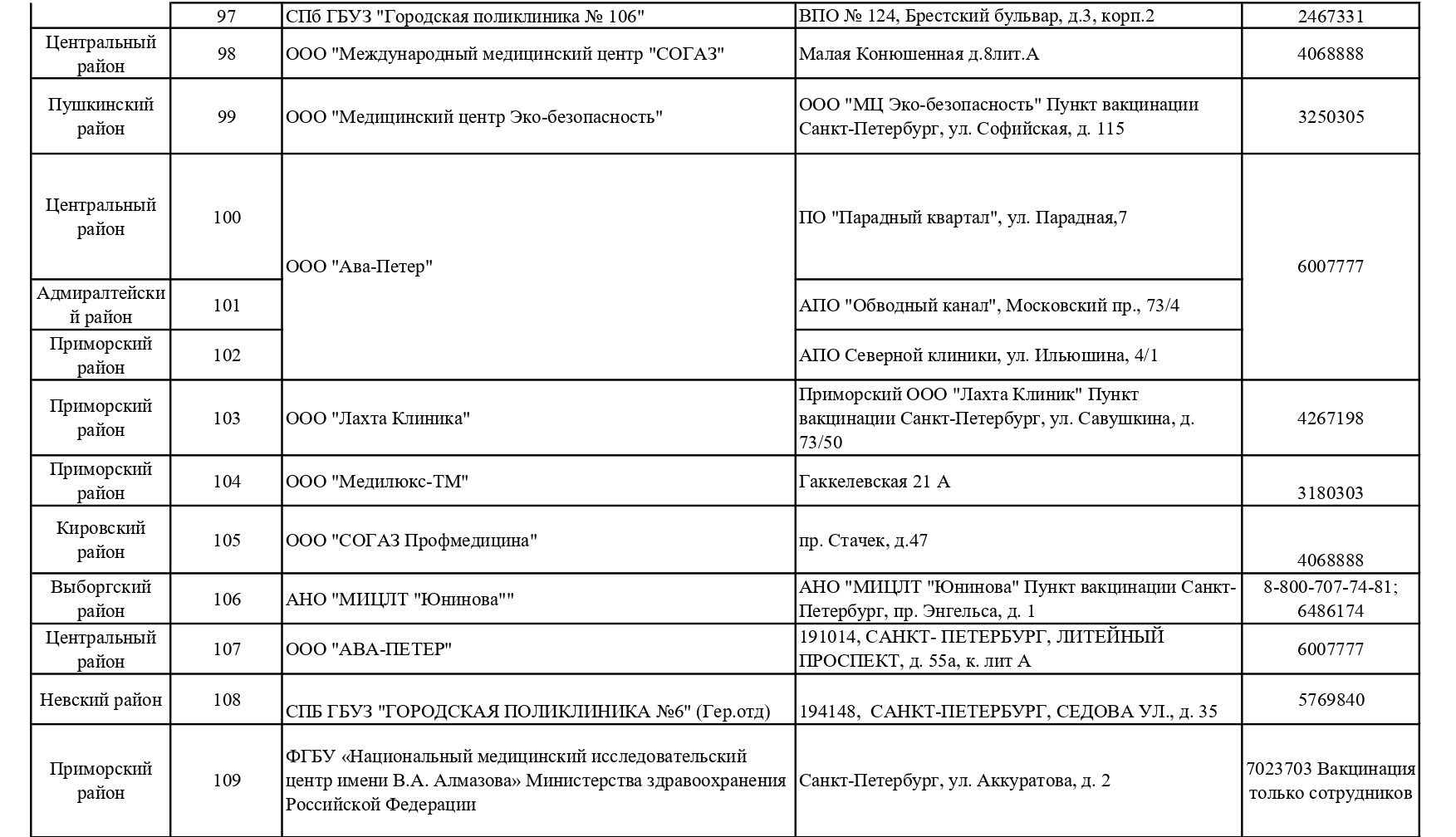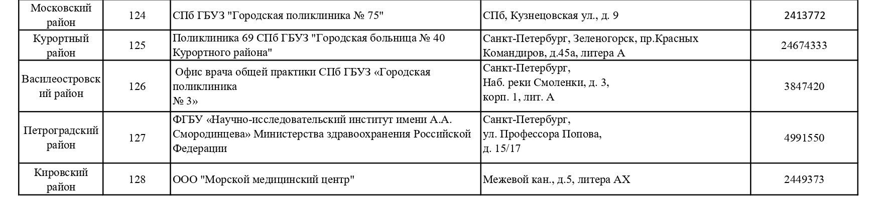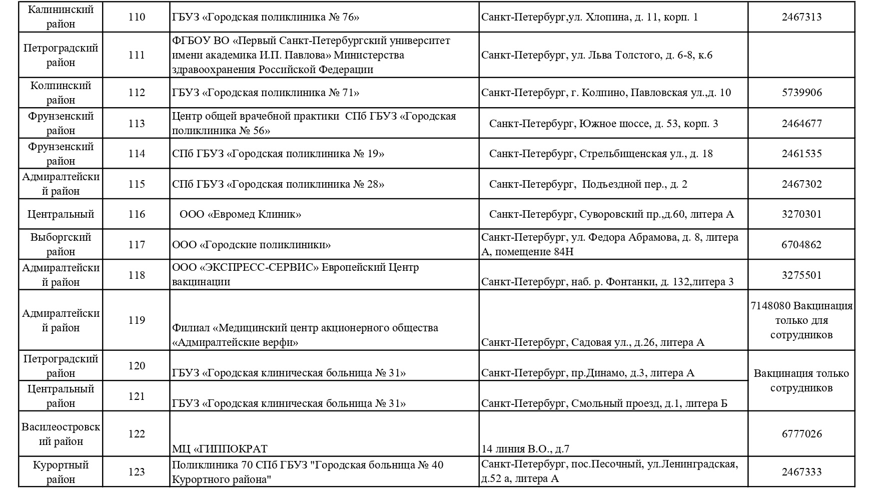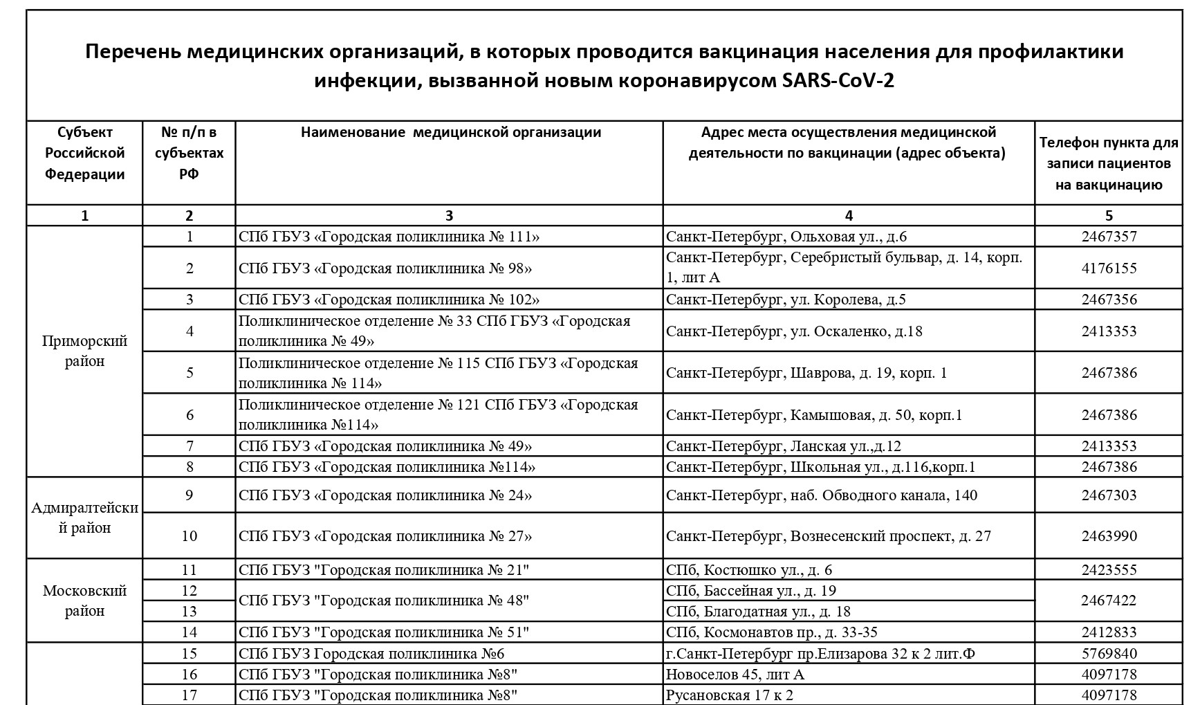 Обновленный список пунктов, где проводится вакцинация от COVID-19 в Петербурге