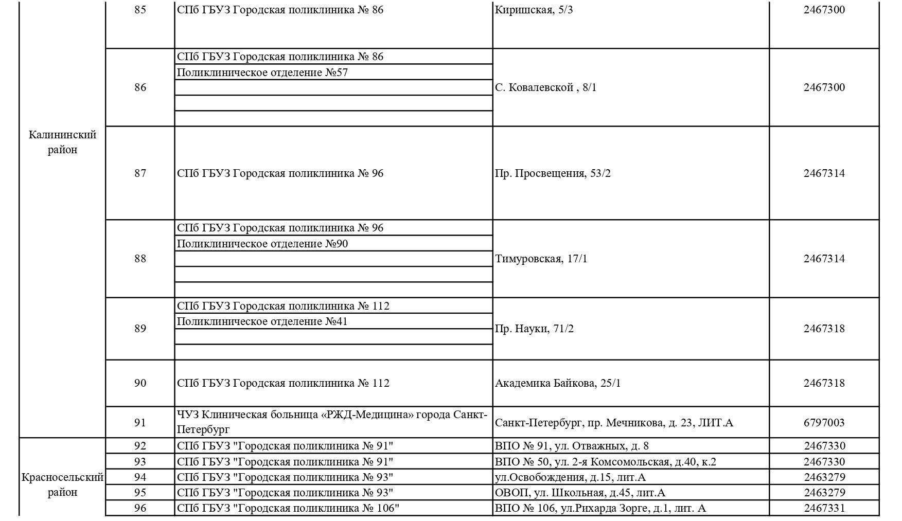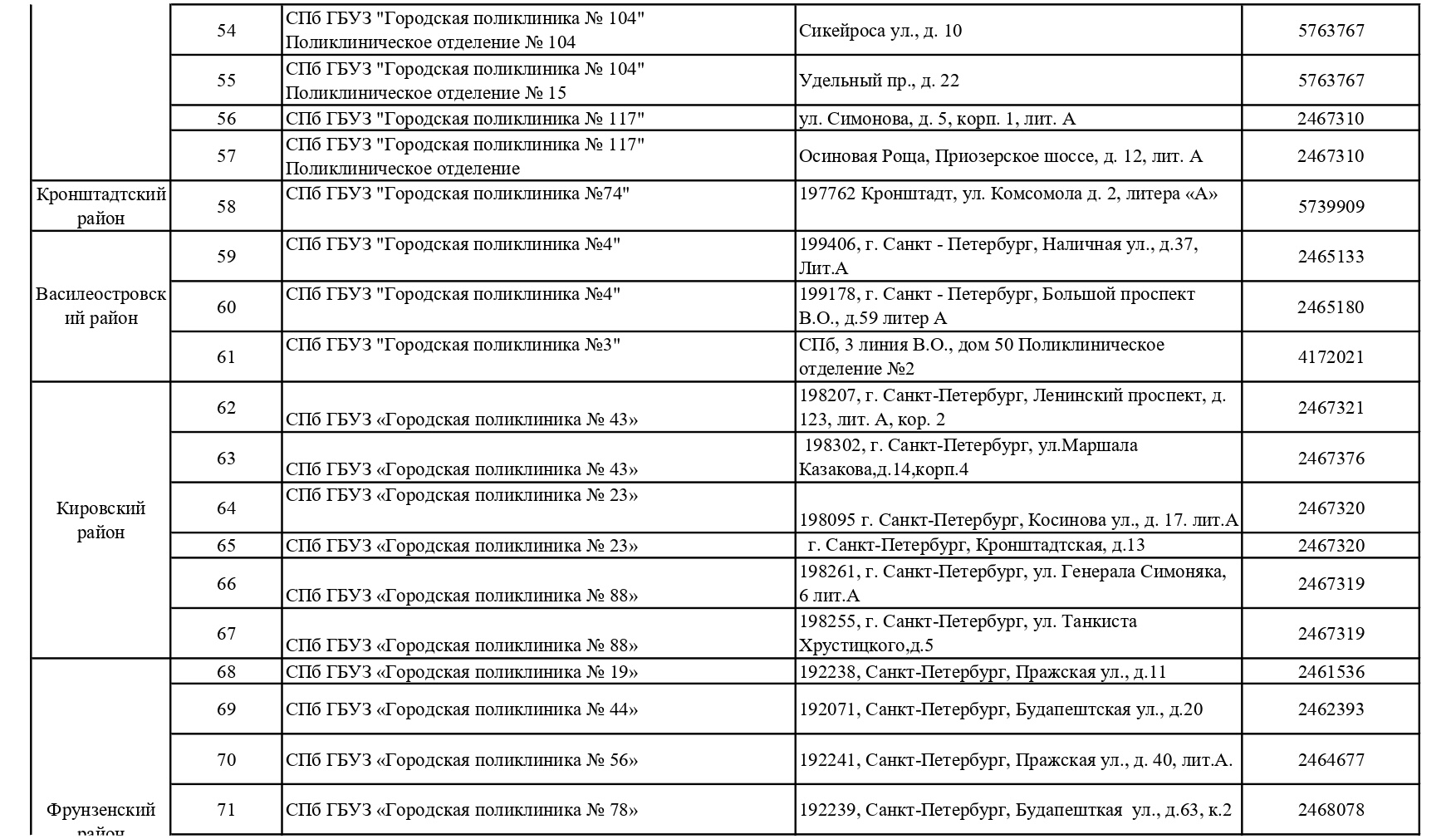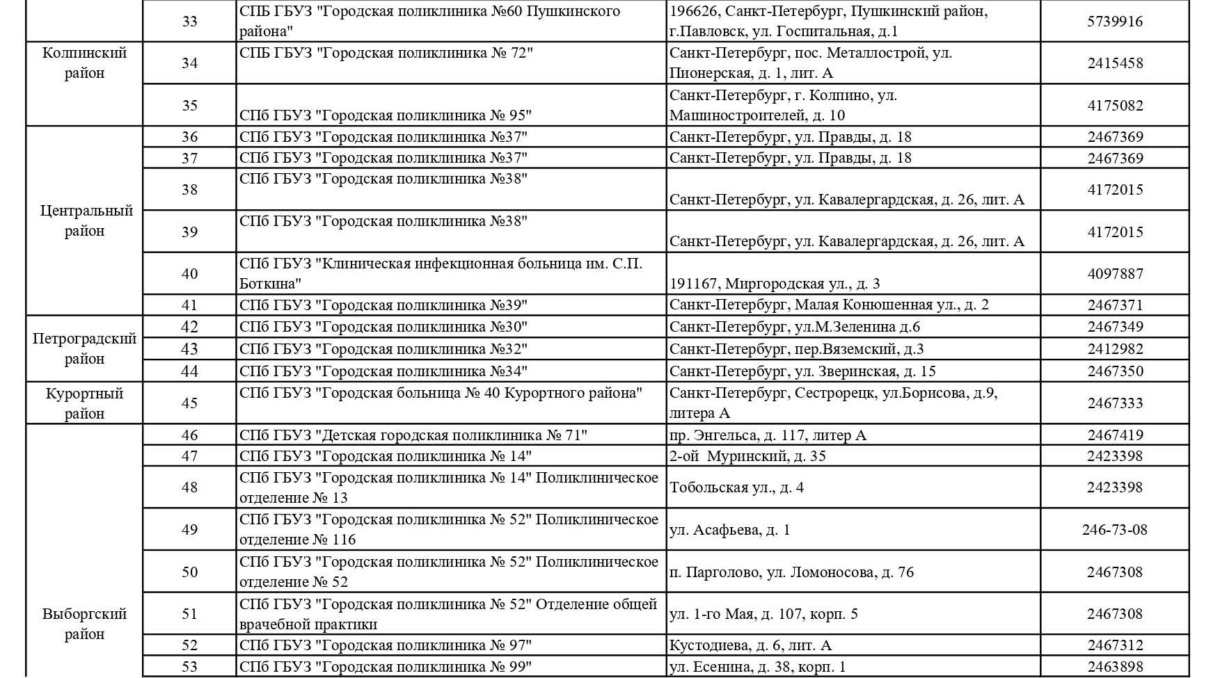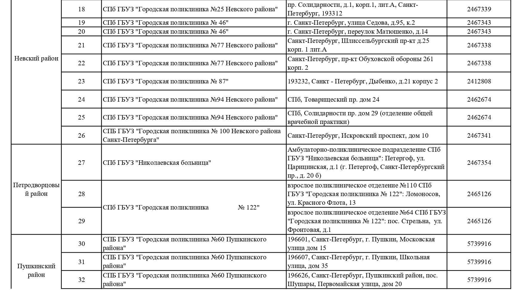 Обновленный список пунктов, где проводится вакцинация от COVID-19 в Петербурге