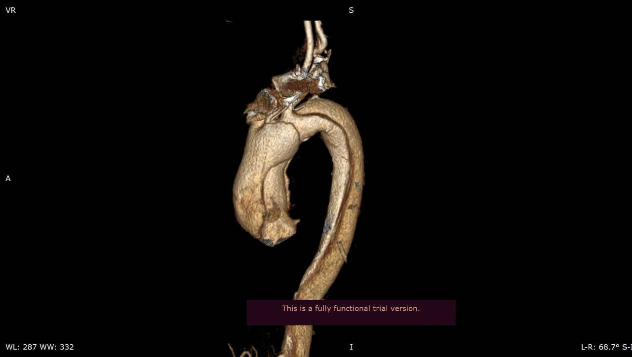 Пациентка экстренно поступила в Елизаветинскую больницу в тяжелом состоянии. У нее было диагностировано расслоение восходящего отдела аорты. Это достаточно грозная патология, возникающая в результате проникновения крови внутрь стенки аорты через надрыв ее внутренней оболочки. При этом состоянии стенки аорты разделяется на слои, что приводит к ряду серьезных последствий, летальность при такой патологии очень высока.