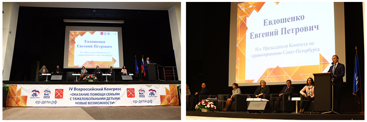 К собравшимся с приветственным словом обратился и.о. председателя Комитета по здравоохранению Санкт-Петербурга Евдошенко Евгений Петрович, который поблагодарил участников конгресса за работу, направленную на улучшение качества жизни тяжелобольных детей. «Степень вовлеченности таких детей в социум является отражением зрелости всего общества. Это общая ответственность! И наша задача – своей работой помочь ребятам с неизлечимыми заболеваниями и их близким», – отметил Евгений Петрович, обратив внимание на то, что по результатам работы Конгресса необходимо сформировать максимально эффективный пакет предложений для законодательной власти, который поможет решить многие из существующих проблем детей с тяжелыми, неизлечимыми заболеваниями.