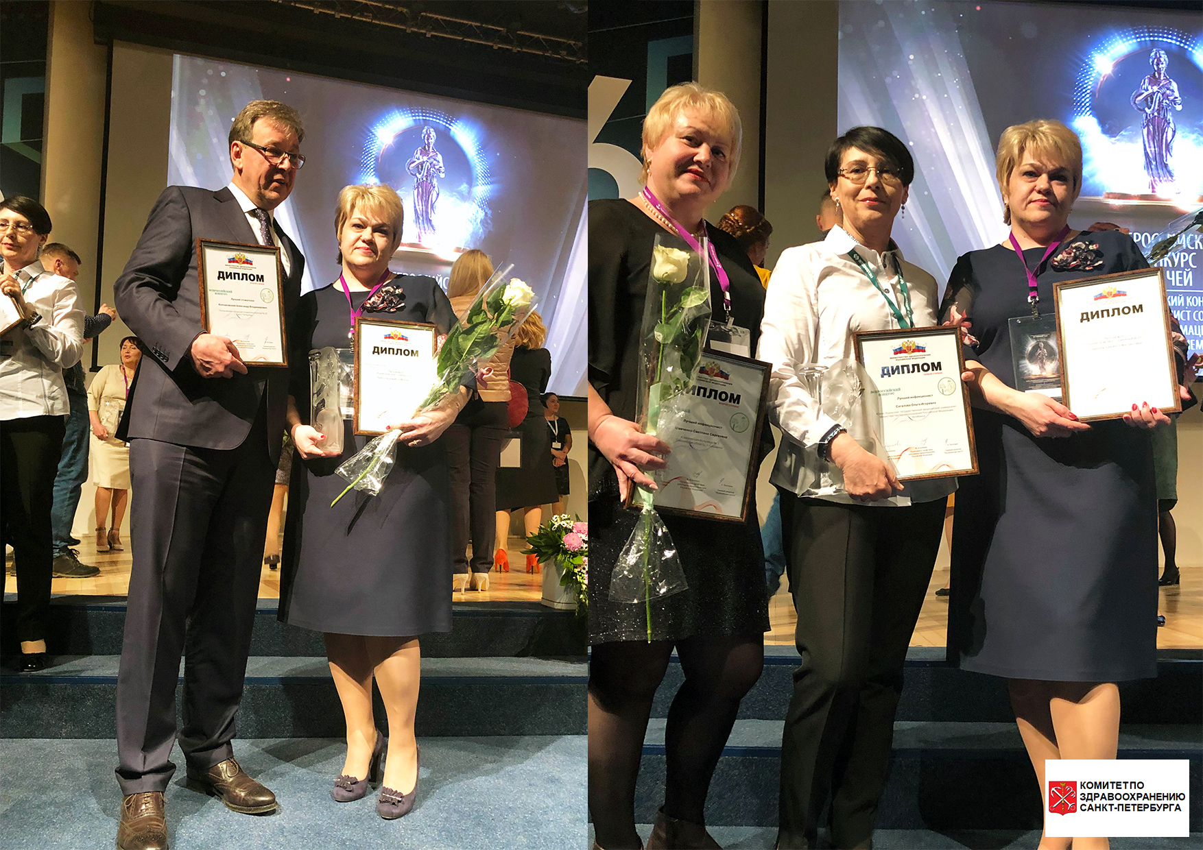 Победителями Всероссийского конкурса врачей-2018 от Санкт-Петербурга стали: в номинации «Лучший врач общей практики» - Ирина Михайловна Лемешевская, врач общей практики СПб ГБУЗ «Городская поликлиника № 102», в номинации «Лучший неонатолог года» - Наталья Захаровна Котина, заведующая отделением патологии новорожденных СПб ГБУЗ «Детская городская больница № 1», в номинации «Лучший инфекционист» - Александр Владимирович Орлов, заведующий инфекционным отделением СПб ГБУЗ «Детская городская больница Святой Ольги» и в номинации «Лучший стоматолог года» - Александр Владимирович Кончаковский, врач-стоматолог-ортопед СПб ГАУЗ «Поликлиника городская стоматологическая № 22».