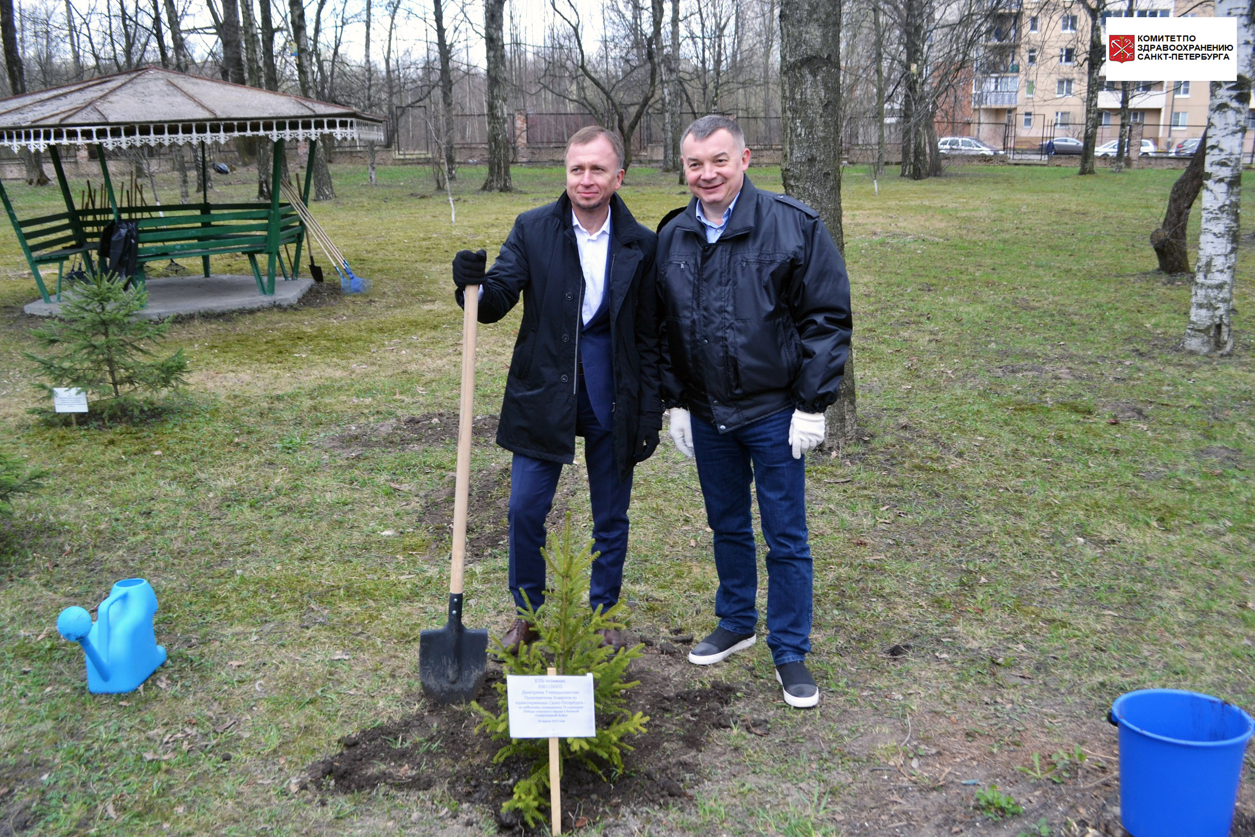 Участники субботника очистили территорию от прошлогодней листвы и мусора, а также поучаствовали в озеленении территории госпиталя. Так, председатель Комитета по здравоохранению Дмитрий Лисовец посадил ель на «Аллее почетных гостей».