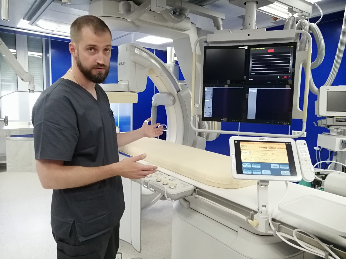 Ангиографическая операционная оснащена всем необходимым оборудованием, включая современный цифровой ангиографический комплекс, позволяющий выполнять операции на сосудах любой сложности.