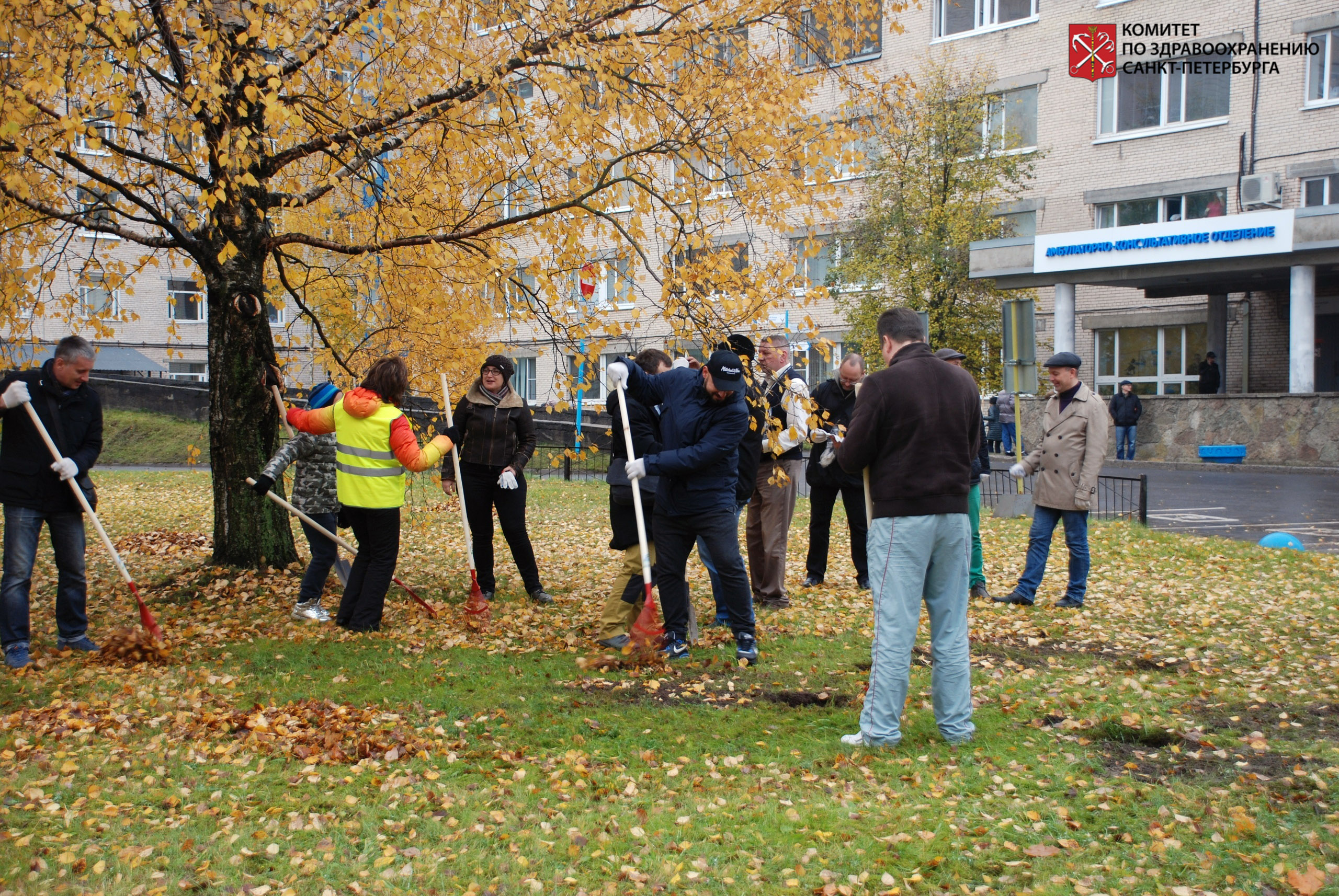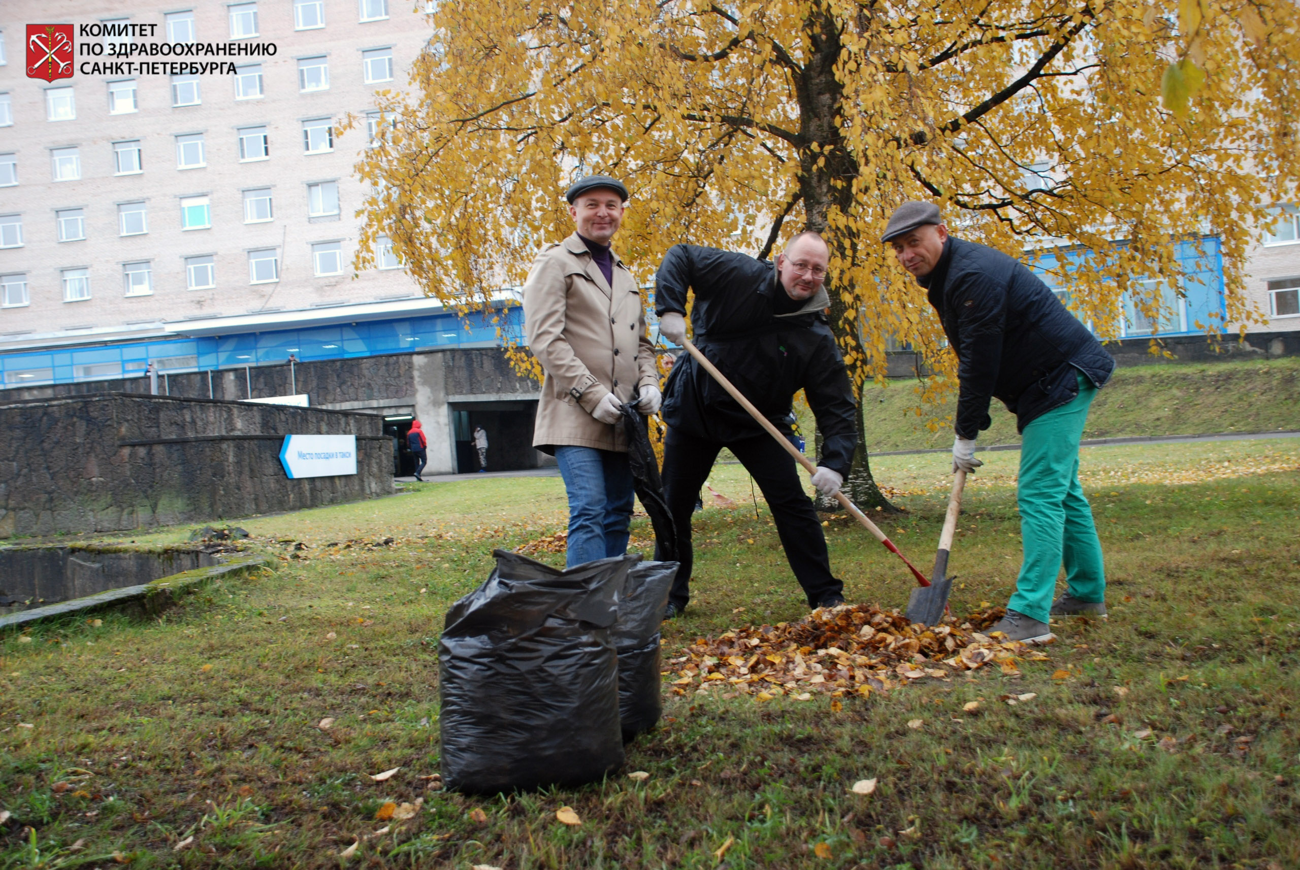 Cотрудники Комитета по здравоохранению приняли участие в традиционном субботнике, который прошел на территории Елизаветинской больницы. Вместе с персоналом крупнейшего в Санкт-Петербурге многопрофильного стационара они убрали опавшую листву и очистили территорию больницы от мусора. Также возле амбулаторно-поликлинического корпуса сотрудники Комитета высадили пять туй.